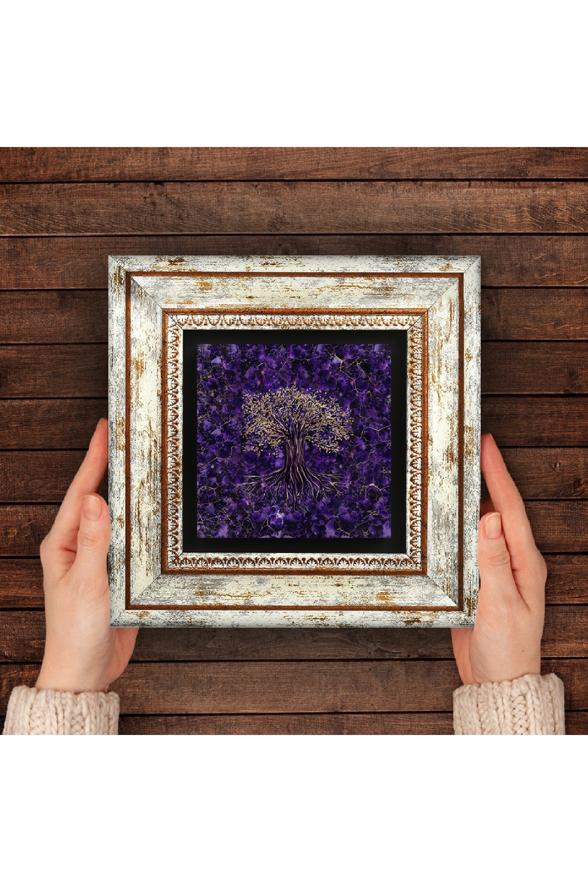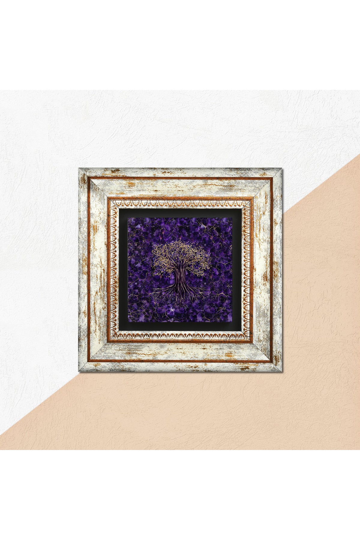 Hayat Ağacı -TK1-225 Çerçeveli Taş Duvar Tablosu orta yüzeyinde doğal taş malzeme kullanılmıştır.