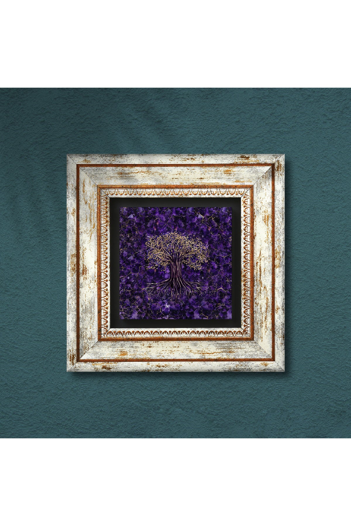 Hayat Ağacı Taş Duvar Tablosu - Çerçeveli Taş Tablo - Dekoratif Duvar Sanatı - Modern Ev ve Ofis Duvar Dekoru TK1-225