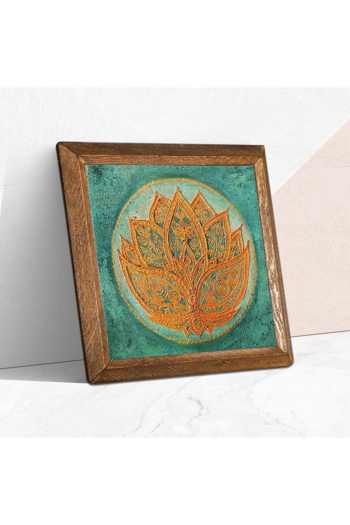 Lotus Çiçeği Taş Duvar Tablosu - Ahşap Çerçeveli Taş Tablo - 25x25 cm - Dekoratif Duvar Sanatı - Modern Ev ve Ofis Duvar Dekoru -W1-189