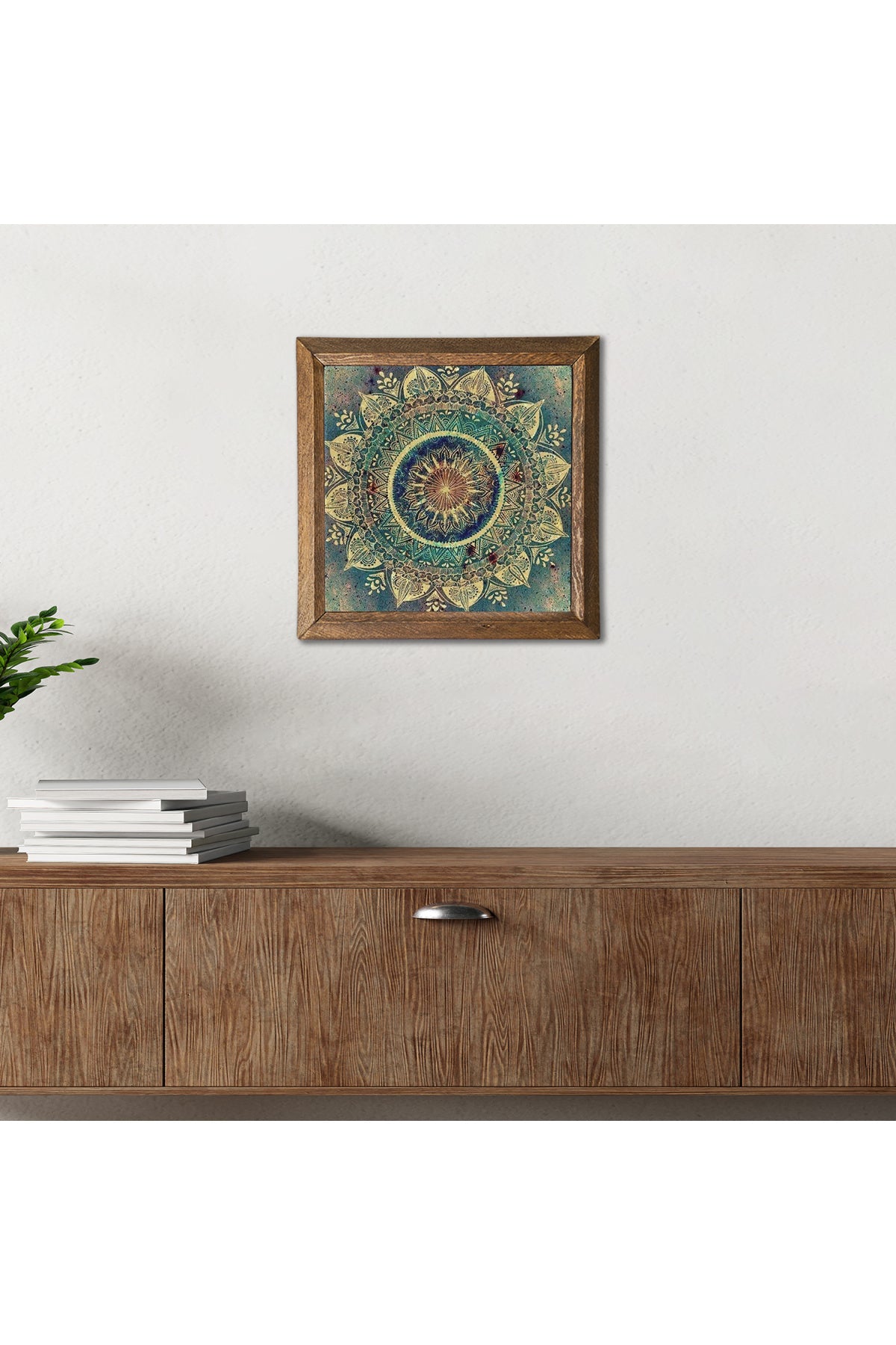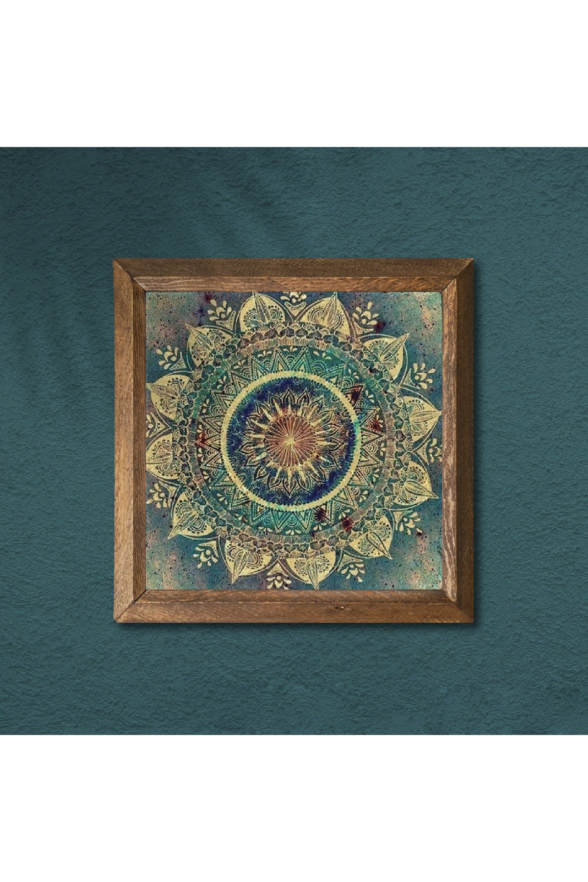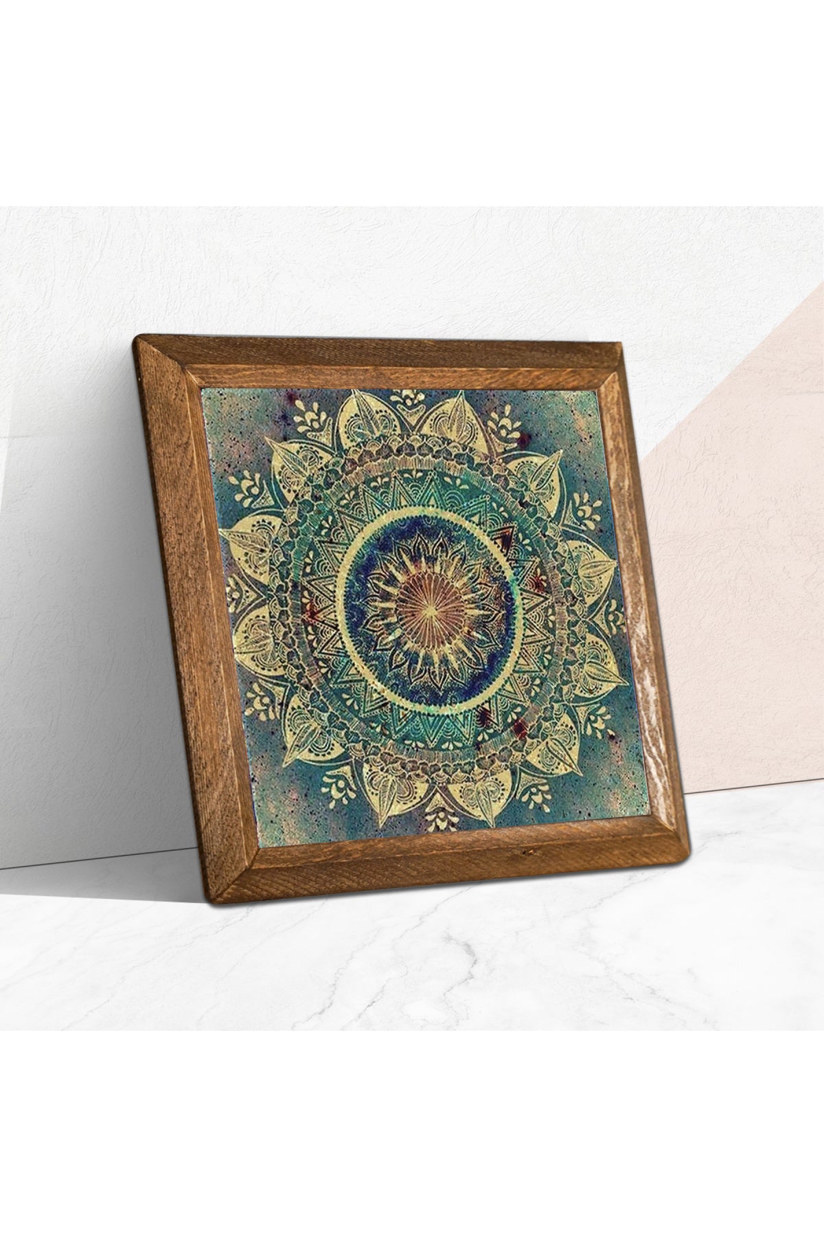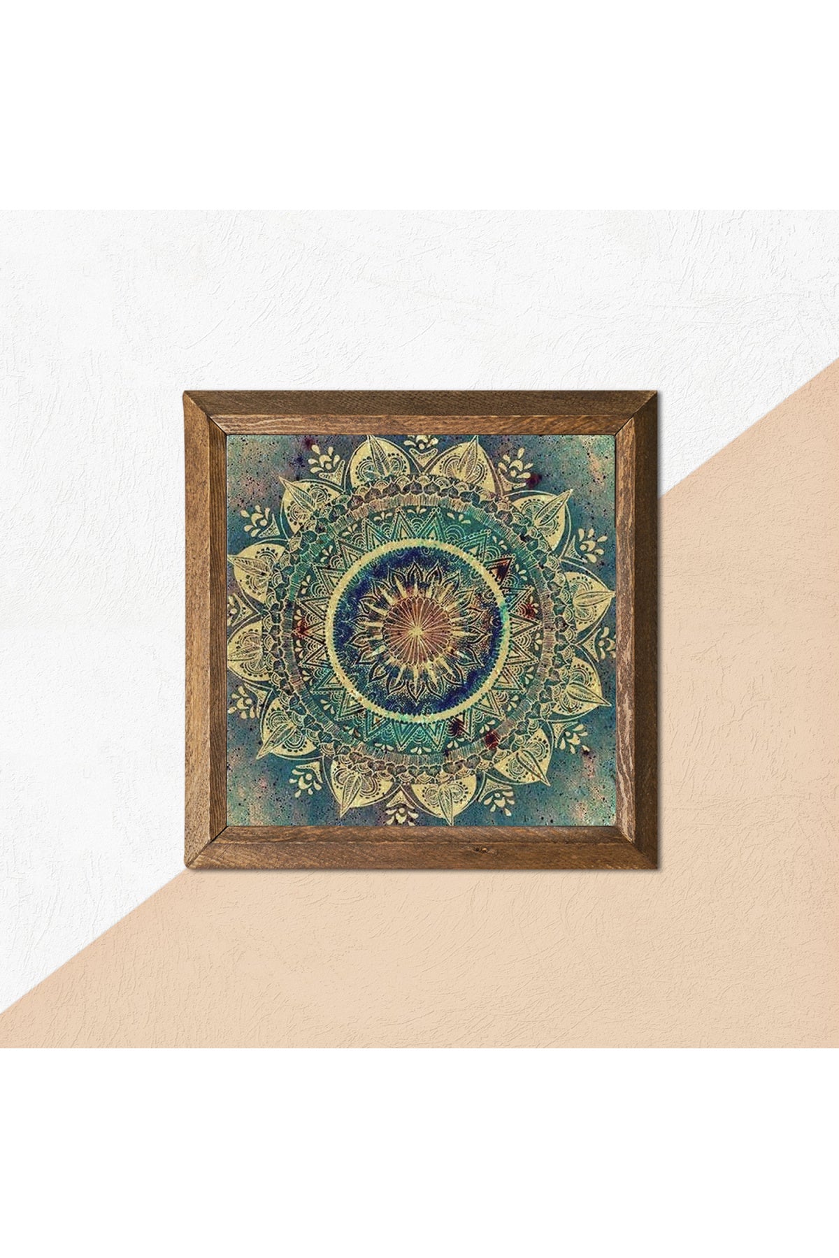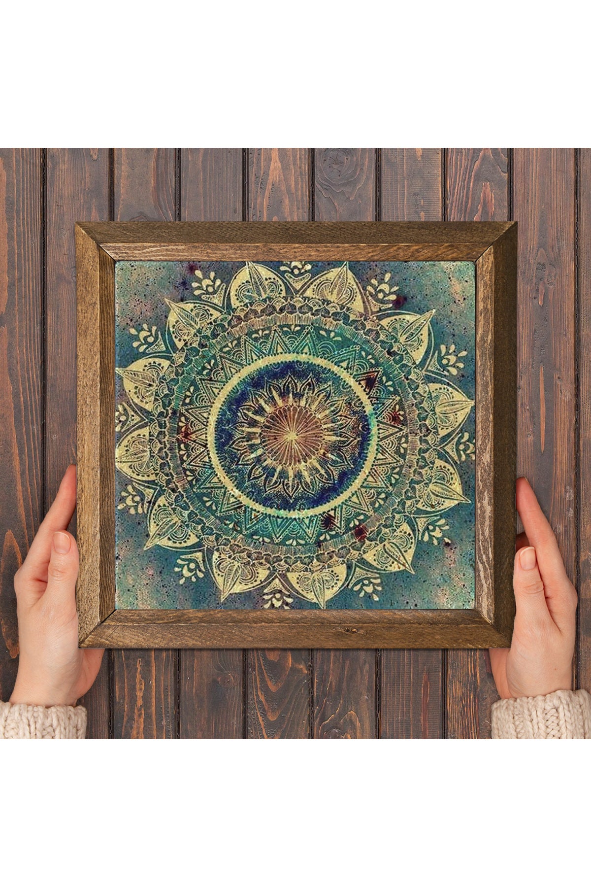 Mandala Taş Duvar Tablosu - Ahşap Çerçeveli Taş Tablo - 25x25 cm - Dekoratif Duvar Sanatı - Modern Ev ve Ofis Duvar Dekoru -W1-231